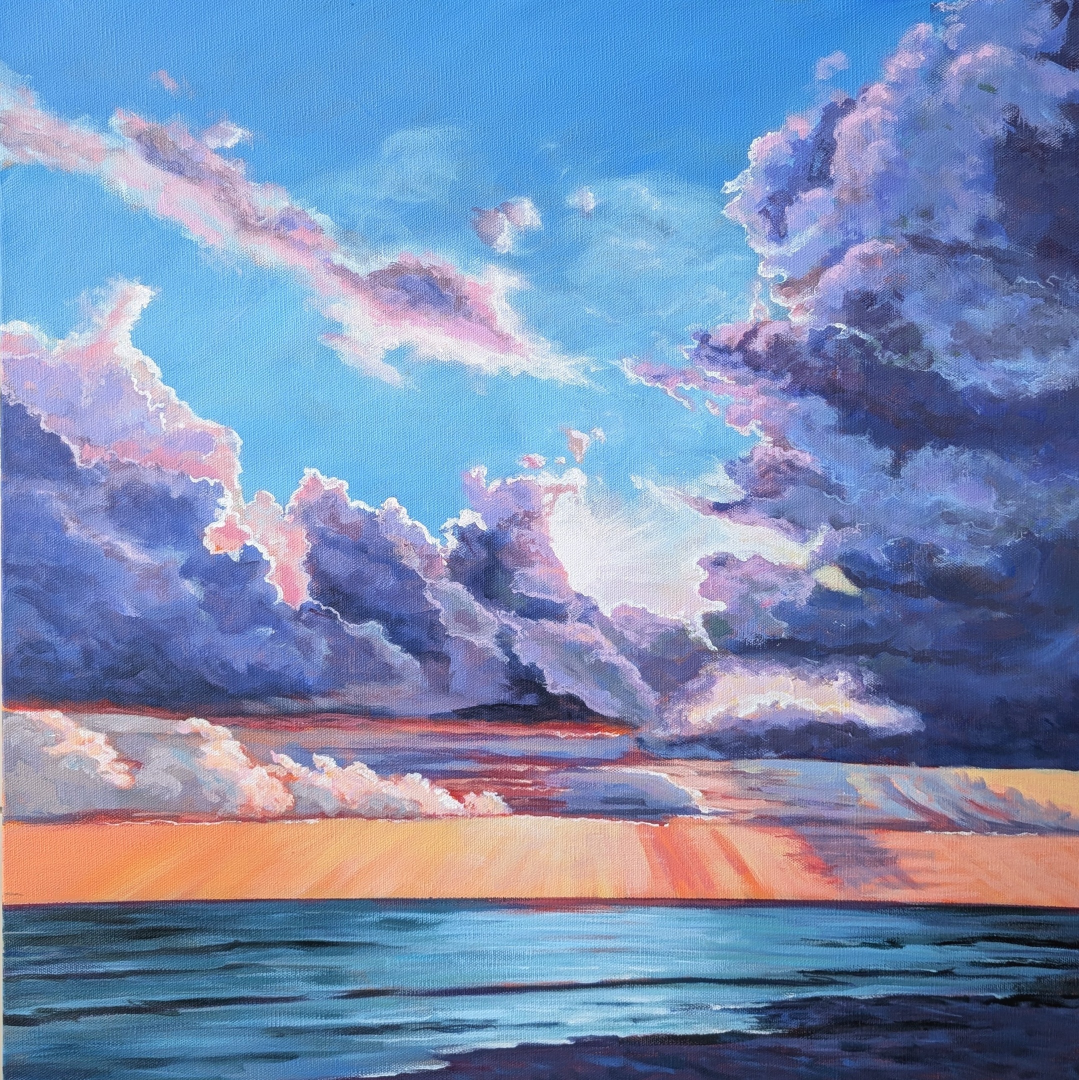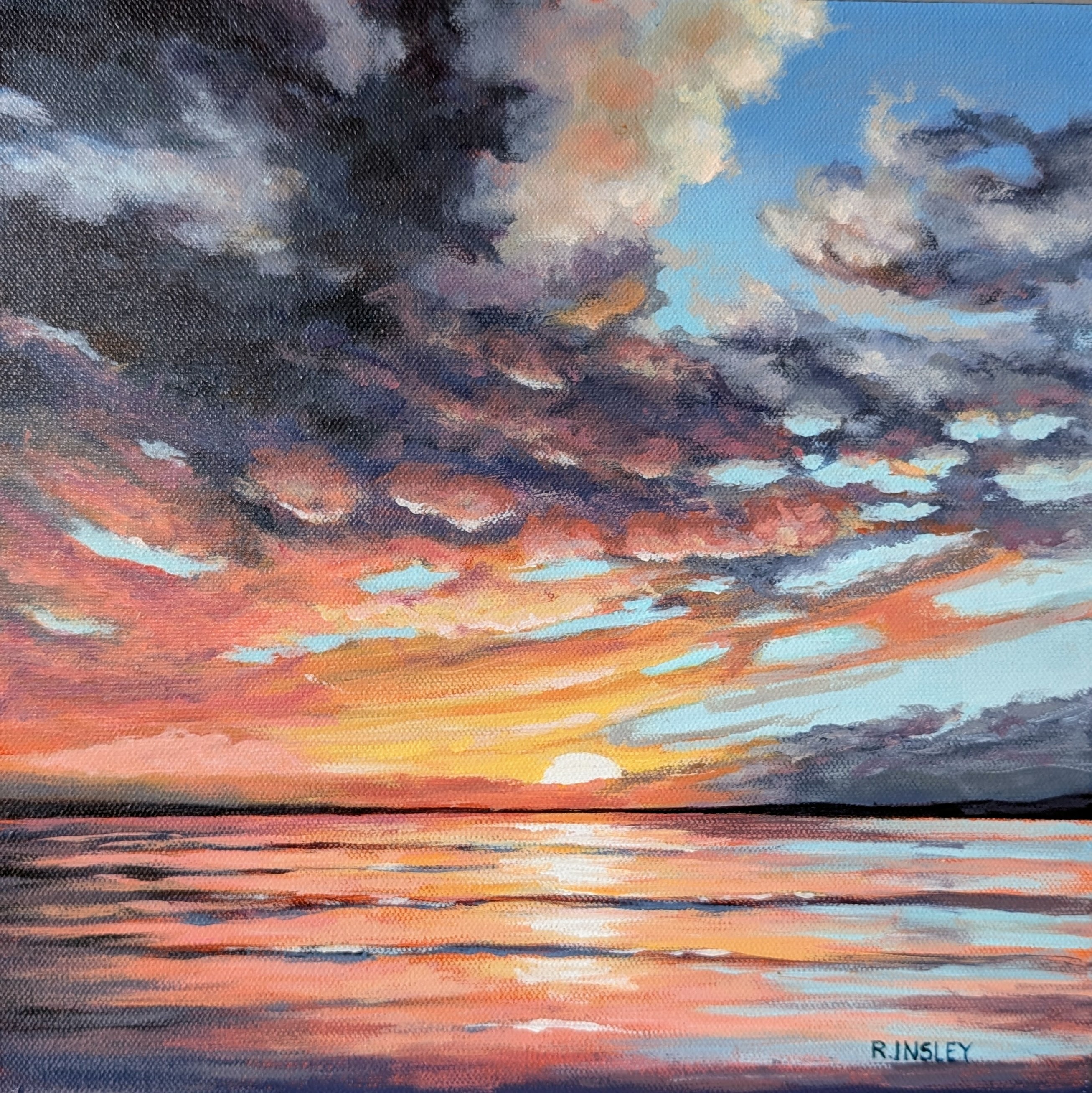 I love Cirrus clouds, with their wispy and delicate nature, though they are difficult to to paint because of their translucent nature. The setting sun gives them another dimension.