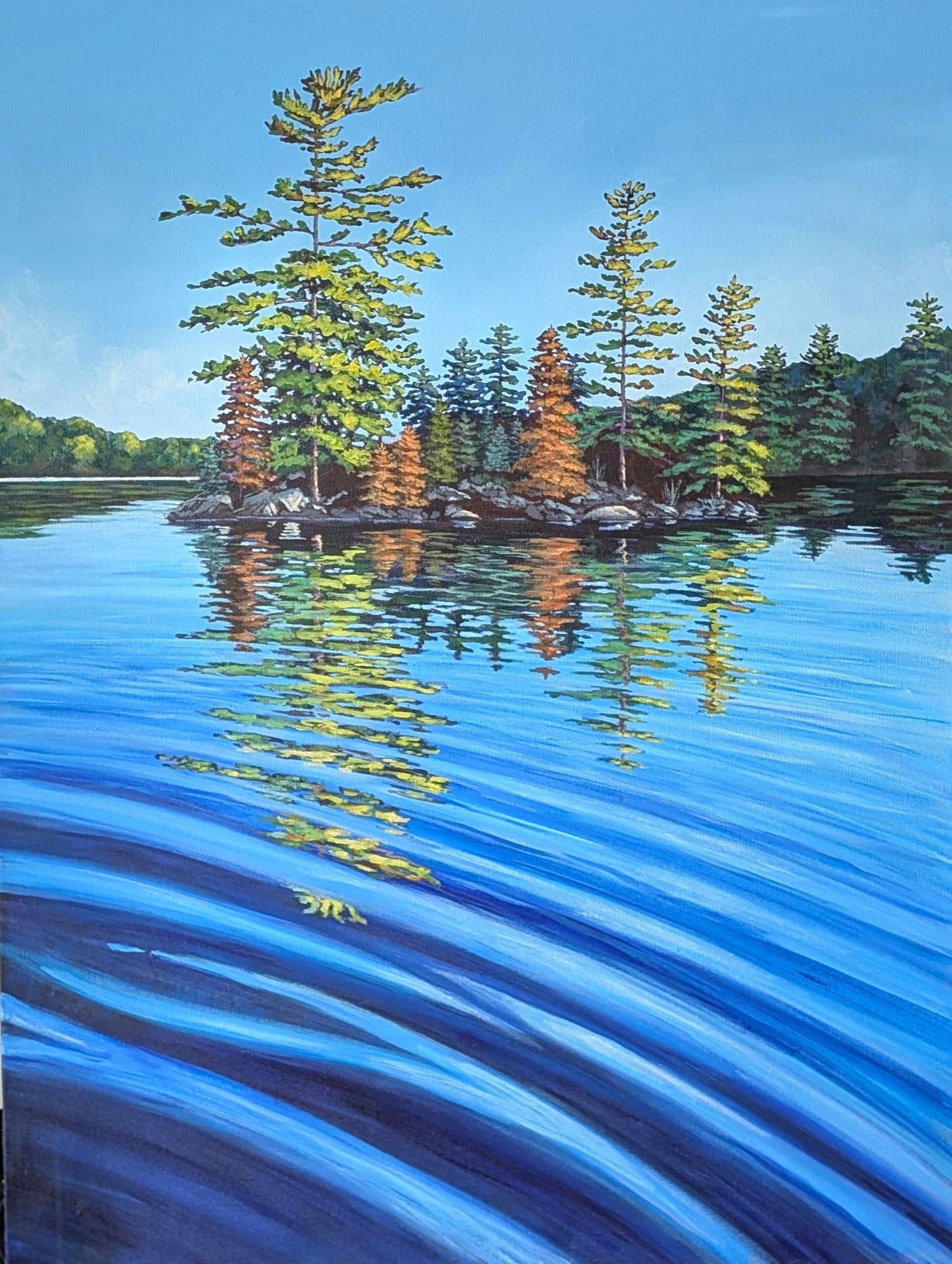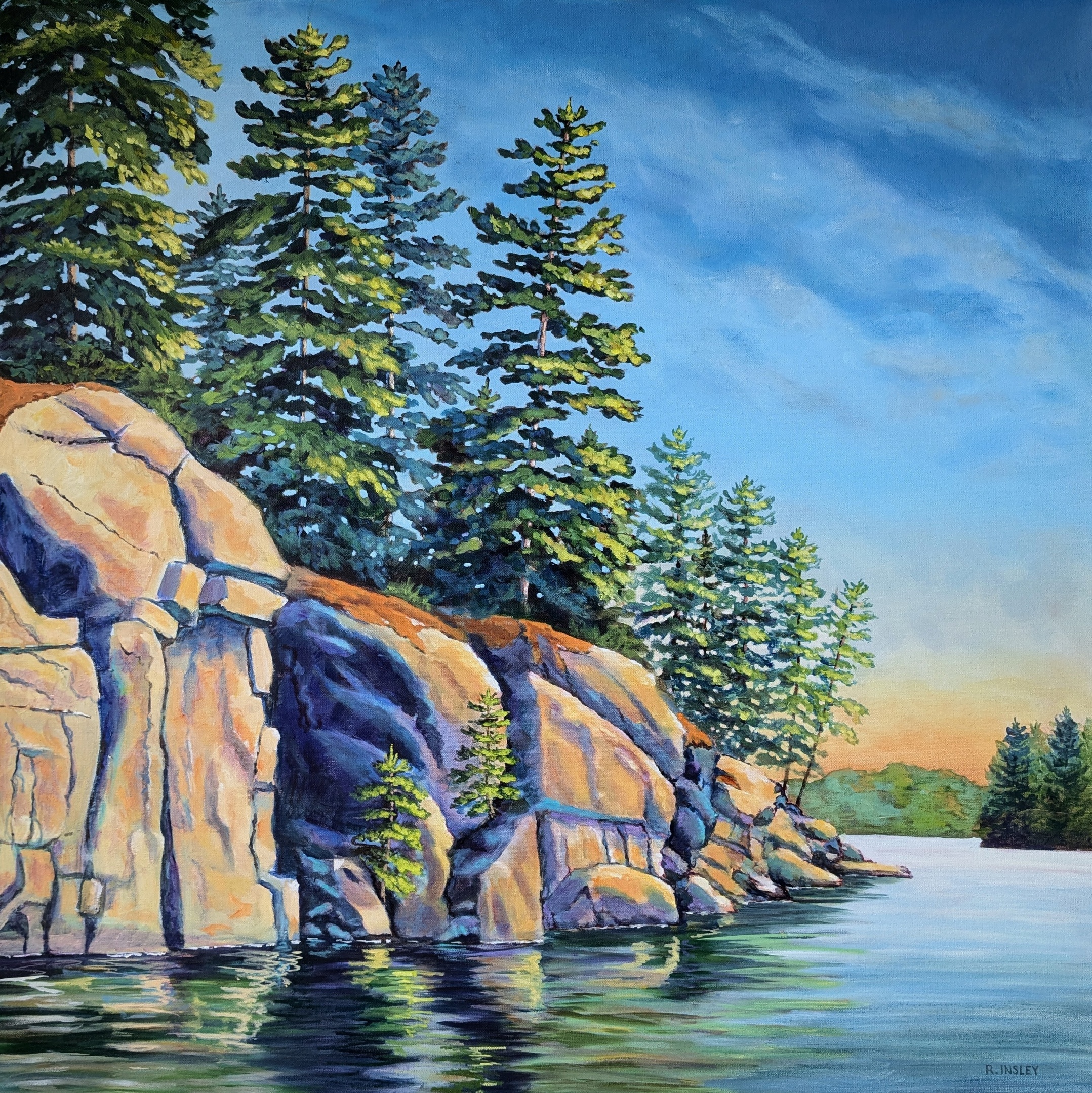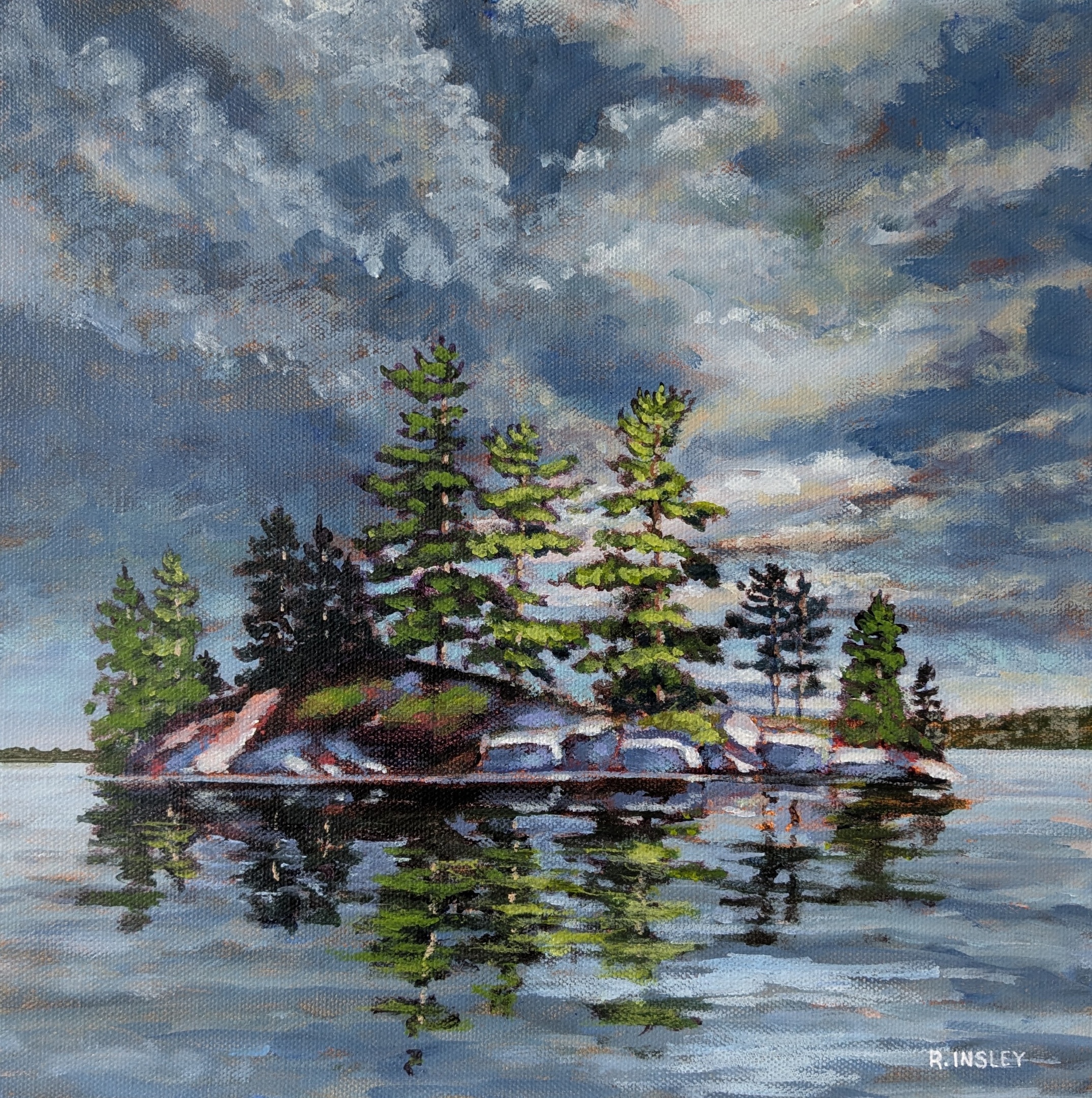 Black Spruce say Algonquin to me. Here they are in a stand with a couple of fine Pine specimens, surrounded by calm marsh waters dotted with lily pads. If I listen carefully, I can almost hear the Bull Frogs